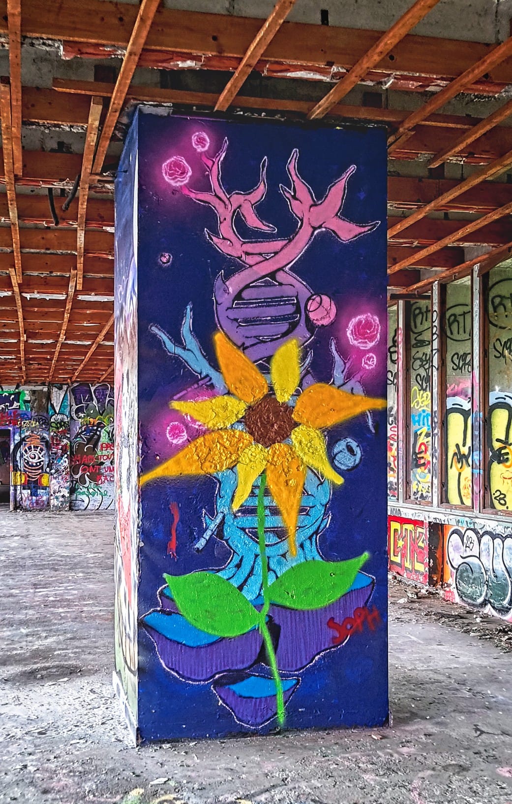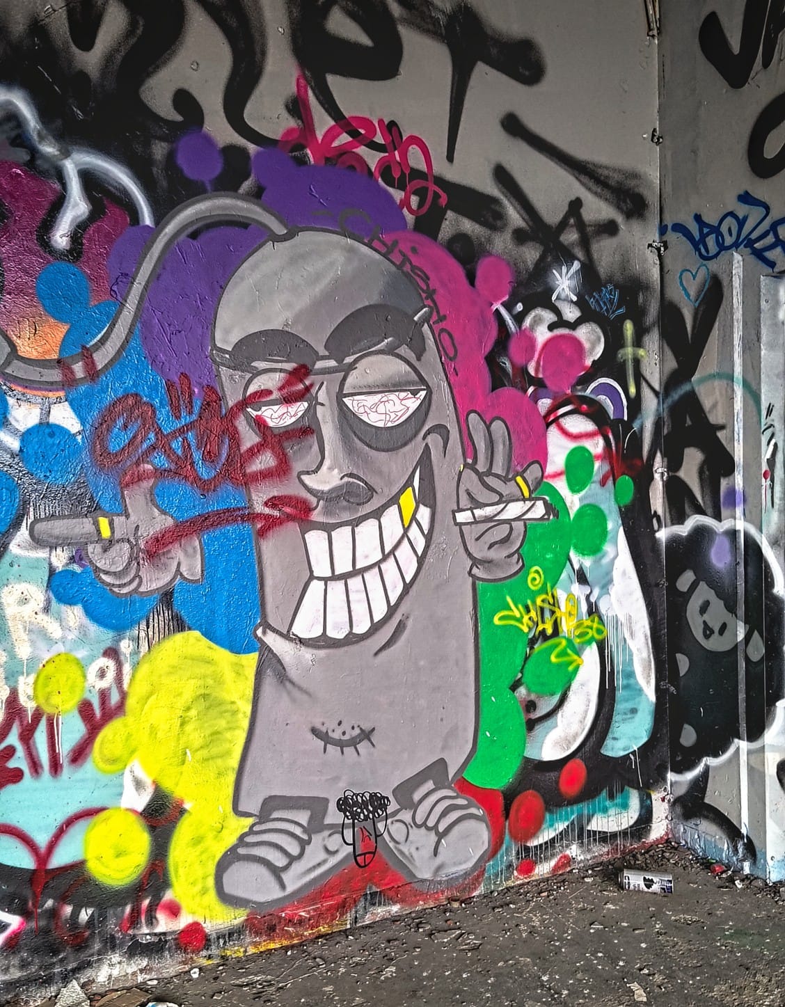 Un grand bravo à @gre_art d'en avoir été l'instigateur et d'avoir invité les graffeurs locaux à refaire la déco, avec des styles très variés.