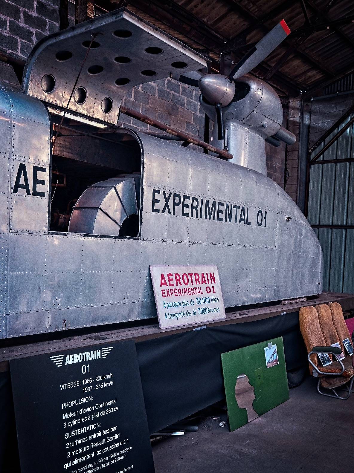 Petite surprise au fond de l'entrepôt : des transports à sustentation qui ont connu leur heure de gloire : l'aérotrain de Bertin et, moins connu, le Tridim (cf images à la fin de l'article).