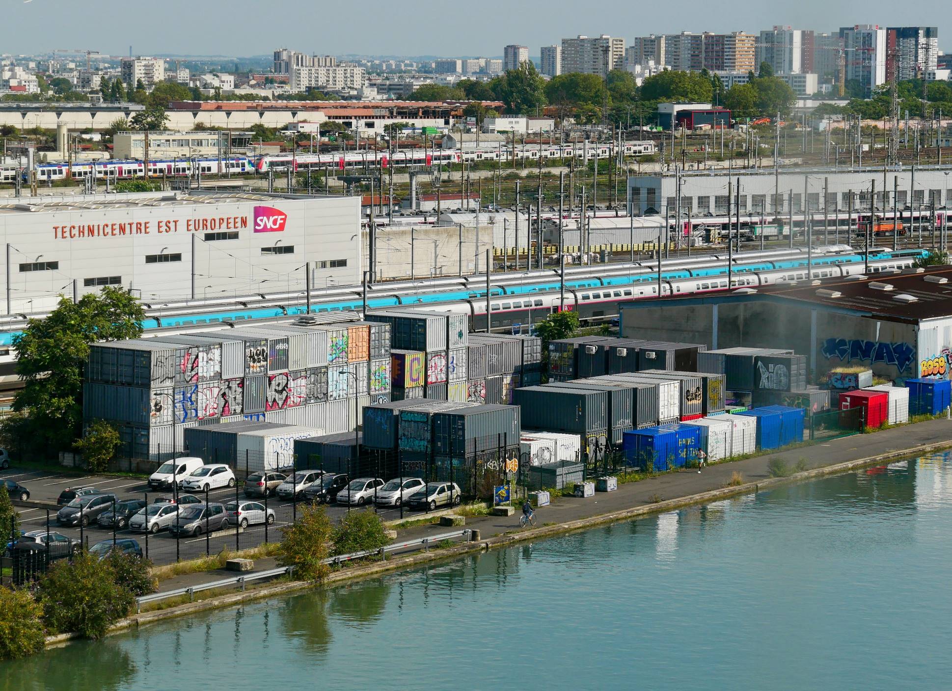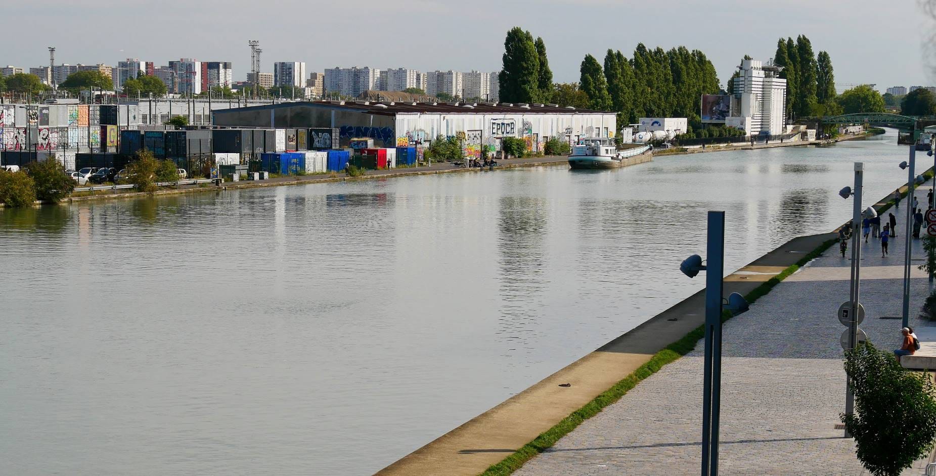 ...autrement dit deux anciens et immenses entrepôts de stockage des marchandises, lorsqu'il était encore un port maritime de transit le long du Canal de l'Ourcq - par Frédéric Jung, l'architecte de la réhabilitation de l'ancienne cathédrale du graff qui, encore aujourd'hui, ne passe pas inaperçue.