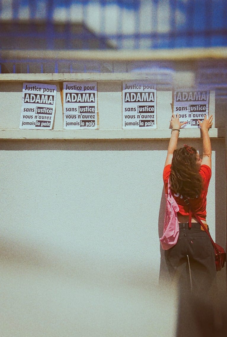 En mémoire de Adama Traoré, décédé à 24 ans le 19 juillet 2016 - le jour de son anniversaire - d’un placage ventral que lui ont fait subir 3 gendarmes de Persan…